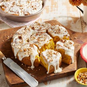 Big orange pumpkins are most frequently associated with the Fall season. They can be decorated for display purposes and they can also be used in many recipes. Here is a recipe from The Pioneer Woman magazine for pumpkin spice cinnamon rolls that you will definitely enjoy.  https://www.thepioneerwoman.com/food-cooking/recipes/a11247/pumpkin-cinnamon-rolls/
